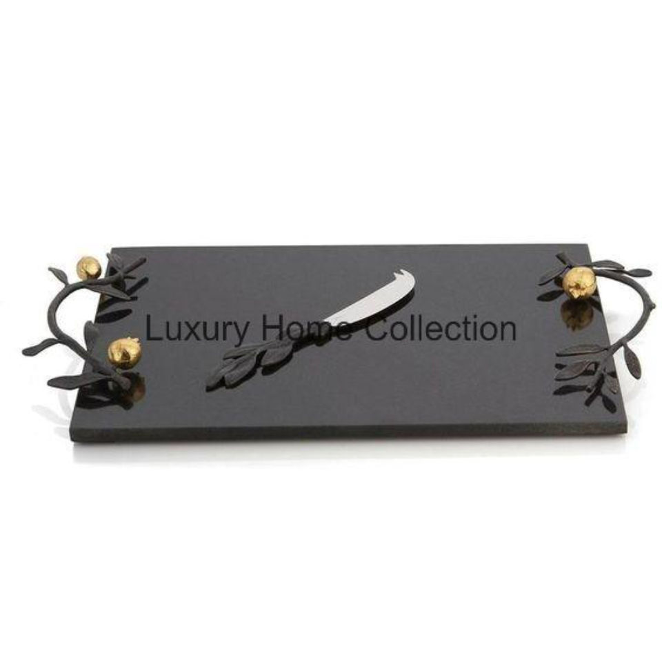 Bandeja de mármol más vendida, forma rectangular con Color negro y rama de árbol, mango fundido, Sombra Negra, utensilios de cocina, suministro de mesa