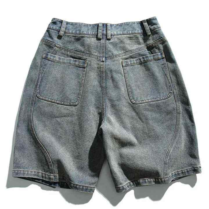 Pantalones cortos de mezclilla con estilo holgados para hombre, pantalones cortos de mezclilla lavados con ácido transpirables personalizados para hombre, pantalones vaqueros holgados