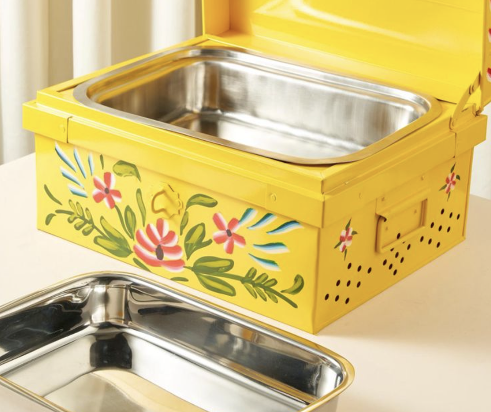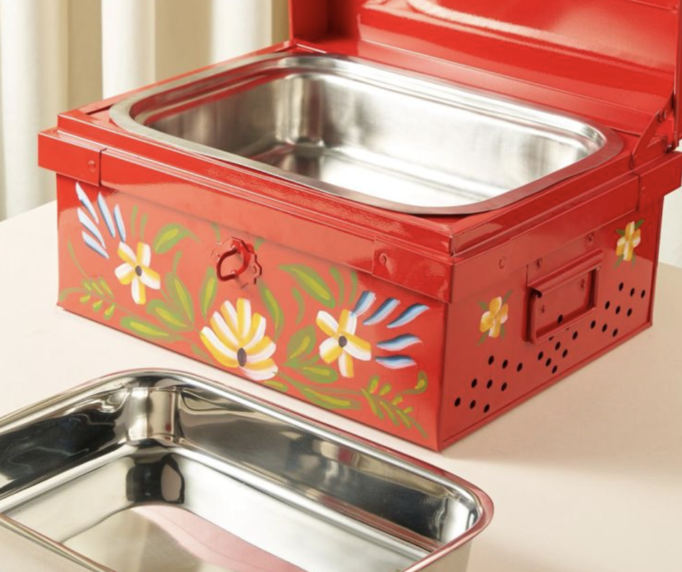 Plato Rectangular de Acero Inoxidable para Servir Arroz, con Tapa, Pintado a Mano, Moderno, No Tóxico, para Bodas y Fiestas