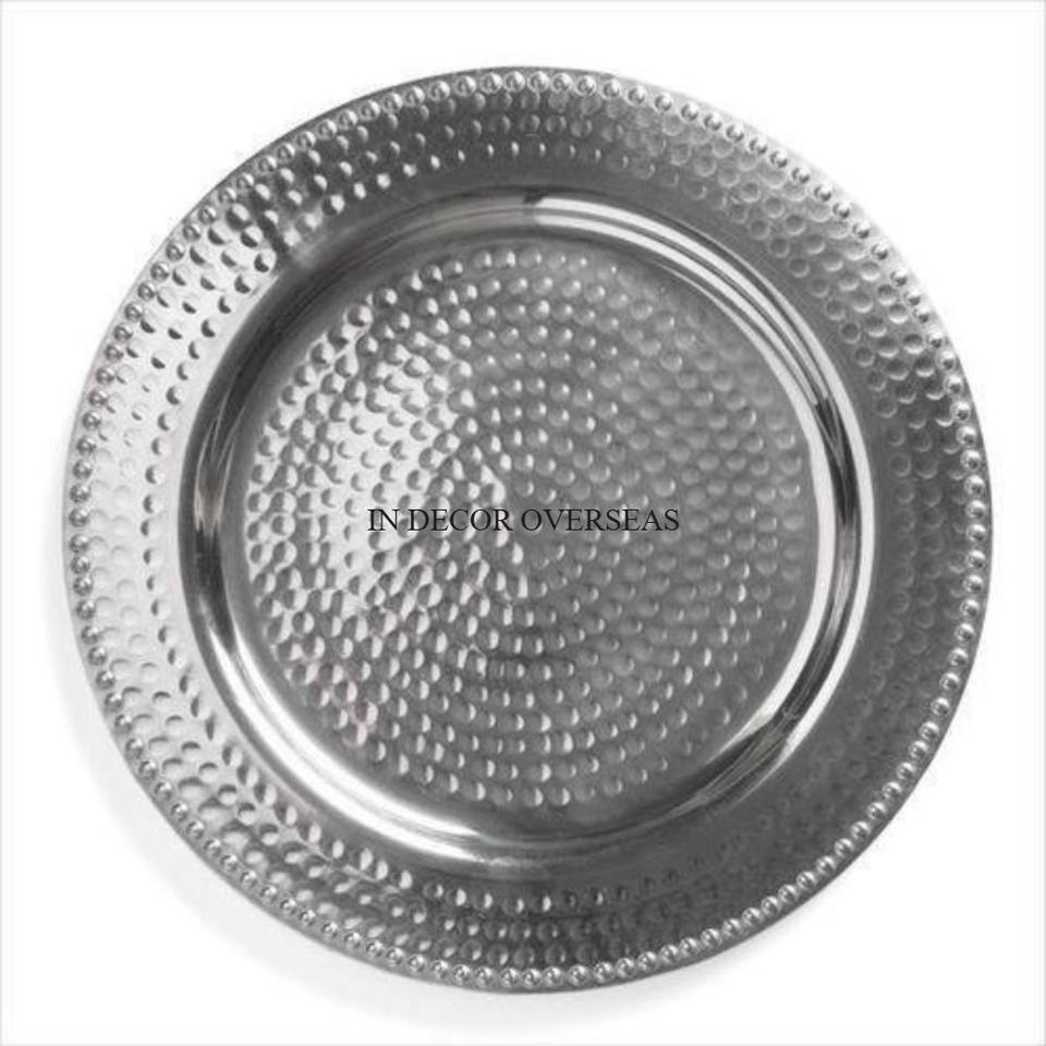 Placas de cargador de boda de forma redonda con cuentas de cristal transparente y Metal pulido brillante con acabado de Color plateado más vendido de la India