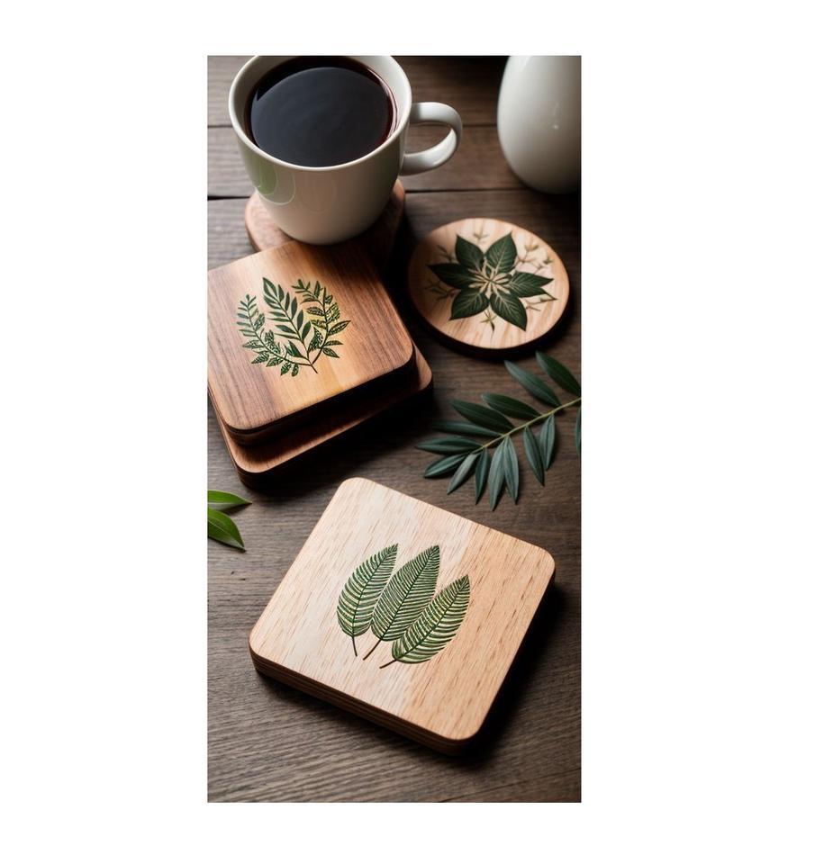 Posavasos de Madera Cuadrados y Redondos para Té y Café Más Vendidos con Soporte, Calidad Estándar, Hechos en India, Ecológicos