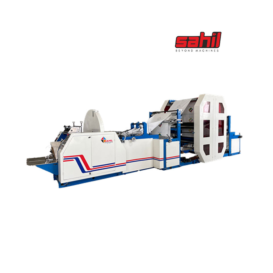 Máquina para fabricar bolsas de papel con fondo en V y impresión en línea a 4 colores