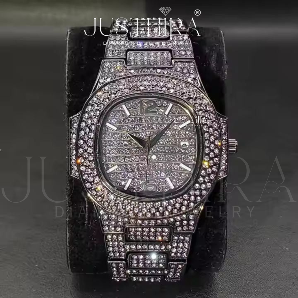 Reloj de Diamantes Simulados a Prueba de Agua Más Vendido para Hombre, Reloj de Pulsera de Lujo con Incrustaciones de Diamantes y Construcción Duradera, Disponible para la Venta