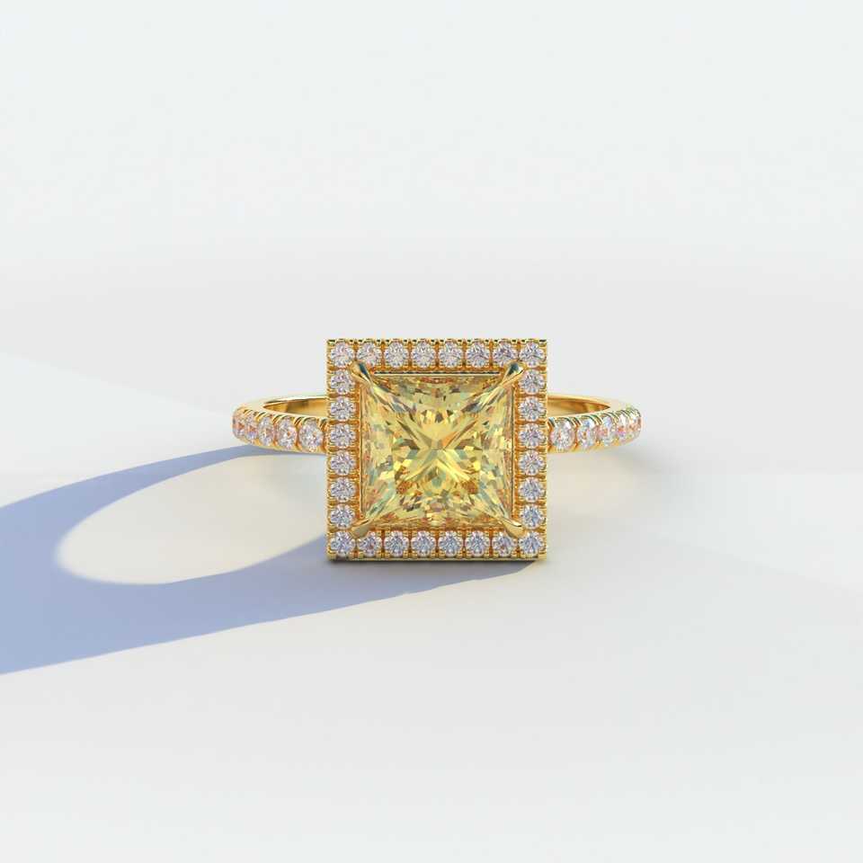 Nombre del producto:Anillo de media eternidad con diamantes de corte princesa de color amarillo vivo
