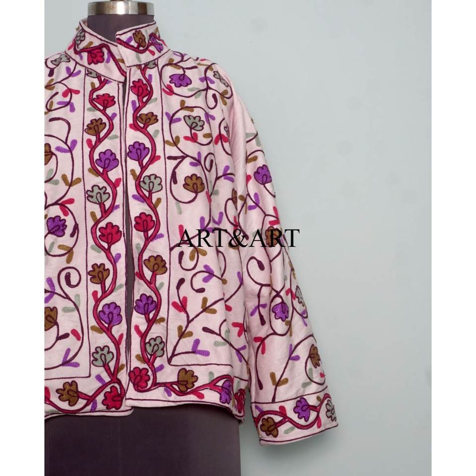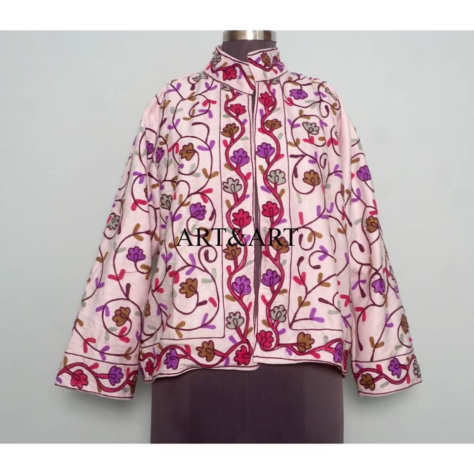 Chaqueta de Piloto de Moda Otoño Invierno para Mujer, Hecha a Mano, de Terciopelo Acolchado, Bordado Suzani, Transpirable, Ecológica, de Algodón de Secado Rápido