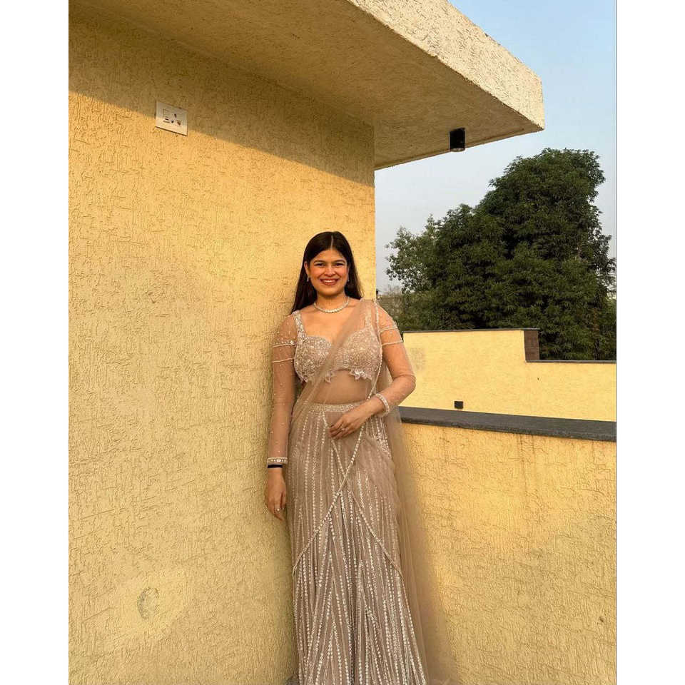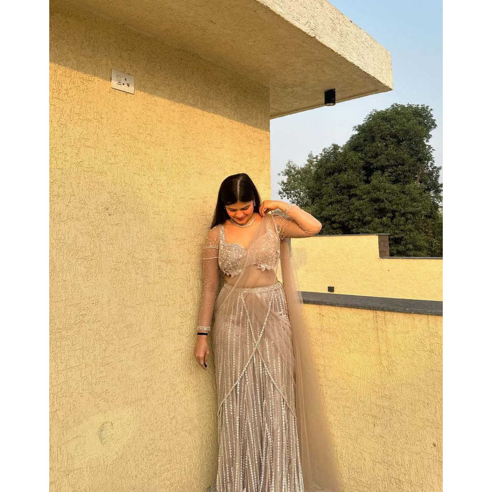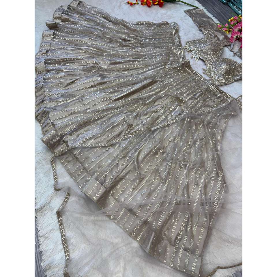 Pez gris estilo Lehenga Choli con Zari Work 1500g talla 2XL