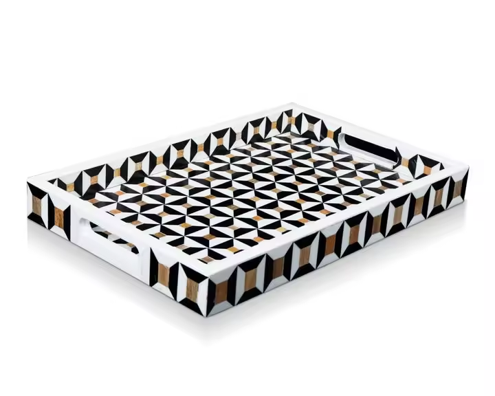 La mayoría de las tendencias de estilo indio, bandeja de servicio con incrustaciones de hueso, bandejas de servicio ópticas decorativas de primera calidad para Falah International.co