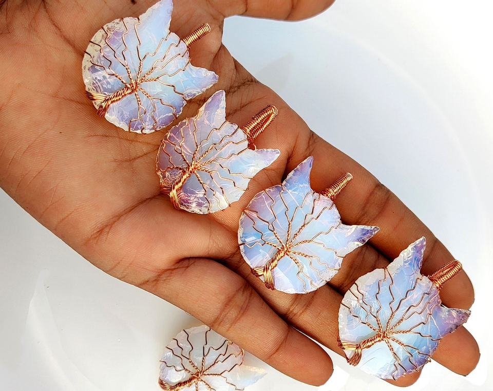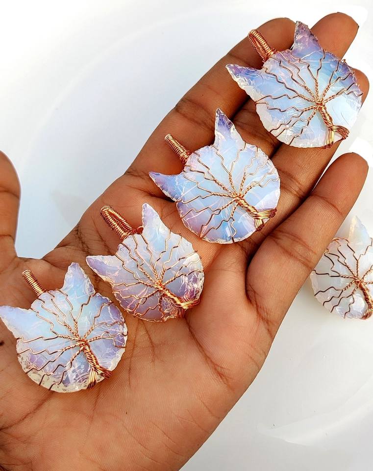 La mayoría de las tendencias de piedra natural con forma de cabeza de gato Opalite colgantes curativos venta al por mayor COLLAR COLGANTE de curación con envoltura de alambre hecho a mano