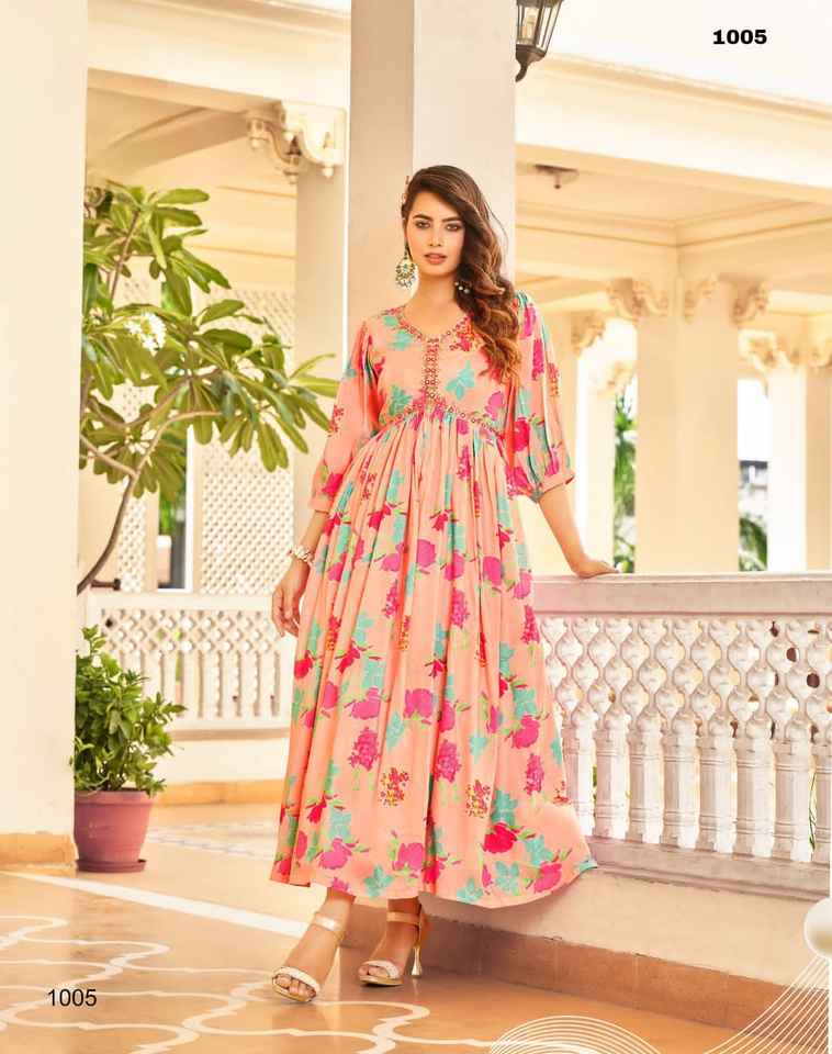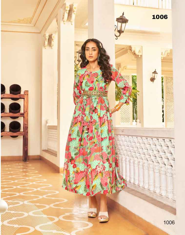 Nombre del producto:Vestido de muselina de moda con impresión digital y trabajo de bordado