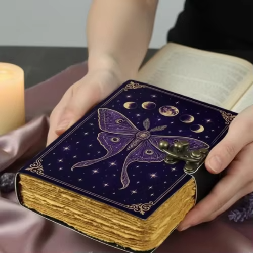 Diario de Cuero Hecho a Mano con Fases Lunares, Libro de Brujería, Sombras, Gótico, Vintage, Religioso, Clásico, Papel con Borde Irregular, 200 Páginas