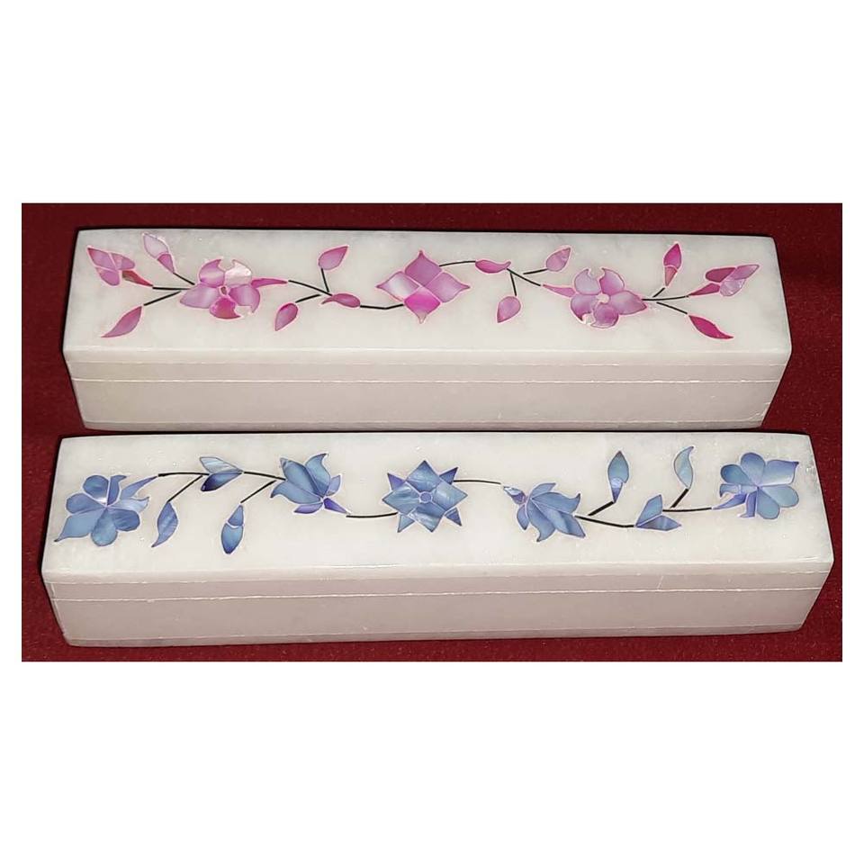 Caja de lápices de mármol de par rosa y azul con incrustaciones de nácar con producto de alta calidad y de primera clase para regalos y obsequios