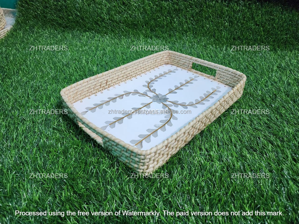 Juego de 2 bandejas de ratán Mother Pearl hechas a mano en la India con logotipo de alta calidad personalizado Top Trending Home Decor Table Number 1