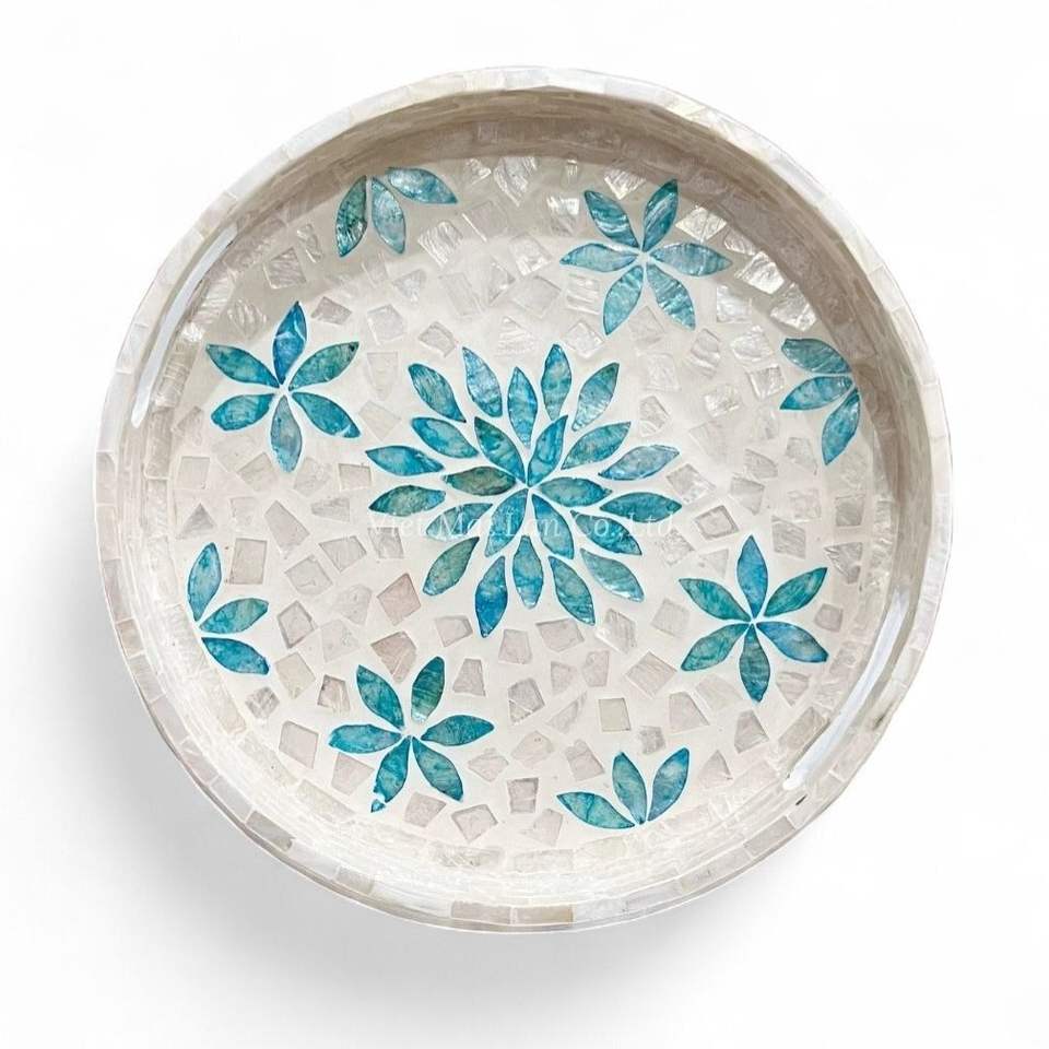 Bandeja de Servir Hecha a Mano con Madreperla, Decoración de Concha Natural con Incrustaciones, Decoración de Mesa Ecológica de Vietnam