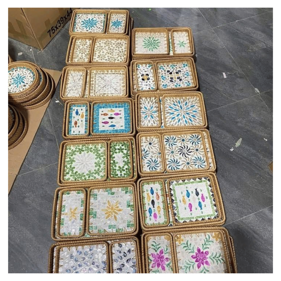 Bandeja de Ratán con Incrustaciones de Madreperla, Base Tejida de Ratán con Incrustaciones de Conchas para Organizador de Tocador, Exhibición de Perfumes y Decoración, Vietnam