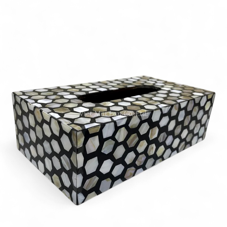 Caja de Pañuelos de Nácar, Hecha a Mano con Incrustaciones de Concha Natural, Decoración Ecológica de Lujo para el Hogar