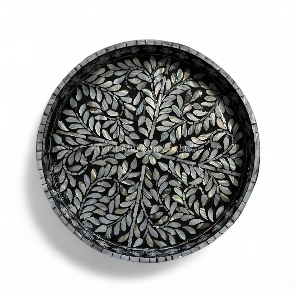 Bandeja de Nácar Hecha a Mano, Bandeja Decorativa para Servir, Material Natural, Incrustaciones de Concha Ecológicas