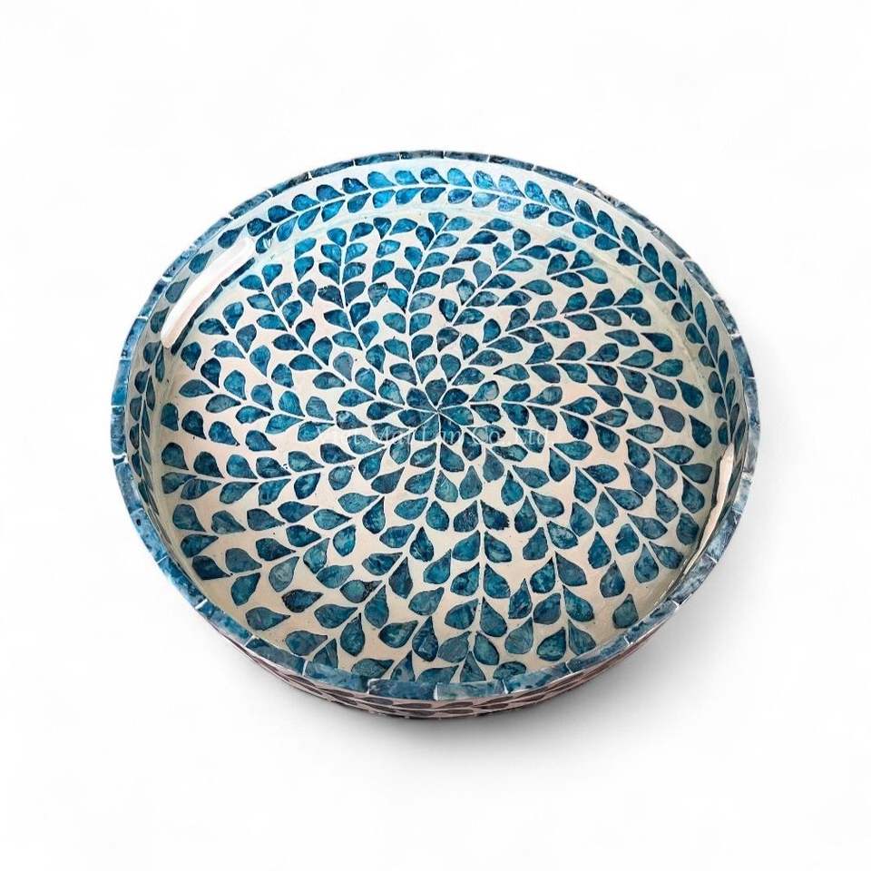Bandeja de Nácar Hecha a Mano, Bandeja Decorativa para Servir con Incrustaciones de Concha, Ecológica para el Hogar, la Cocina y la Mesa