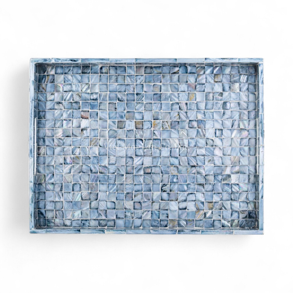 Bandeja de Nácar Hecha a Mano, Bandeja Decorativa para Servir, Ecológica, con Incrustaciones de Concha Natural, para Mesa de Cocina