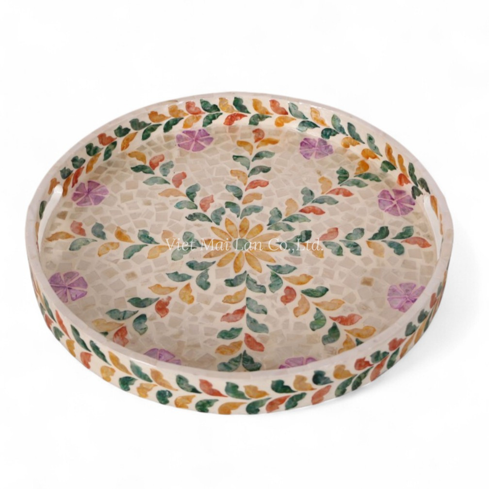 Bandeja de Nácar Hecha a Mano, Bandeja Decorativa con Incrustaciones de Concha Natural, Ecológica para Mesa y Cocina