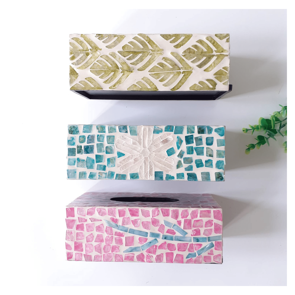 Caja de pañuelos de madera con incrustaciones de nácar, soporte para pañuelos de madera con incrustaciones de nácar para decoración de mesita de noche, hecho en Vietnam