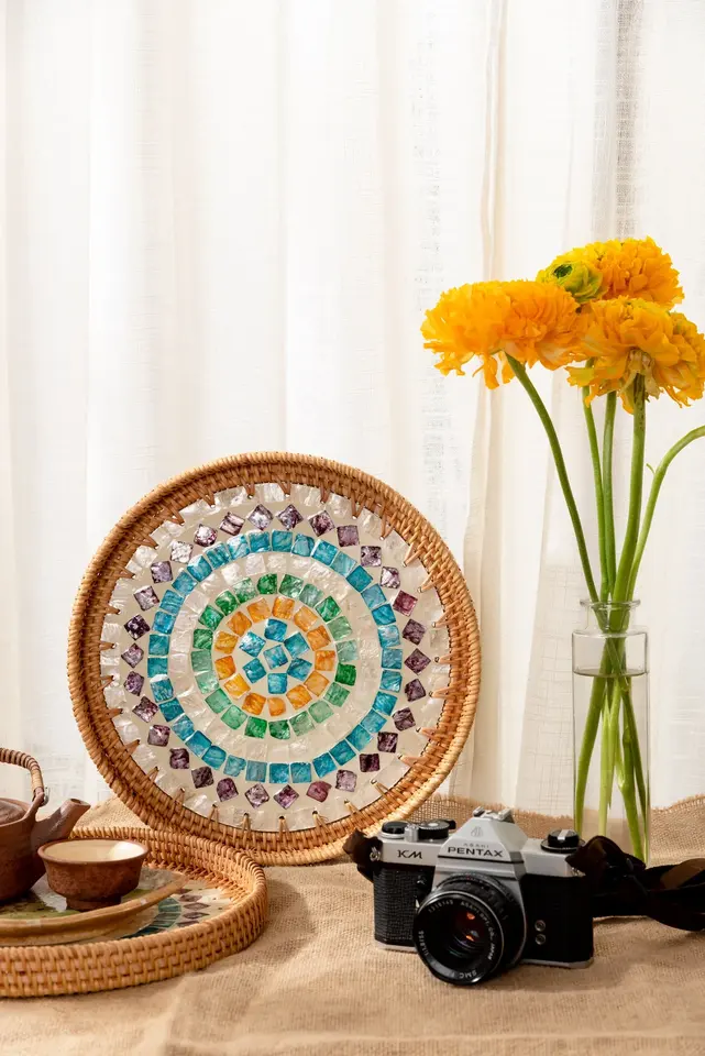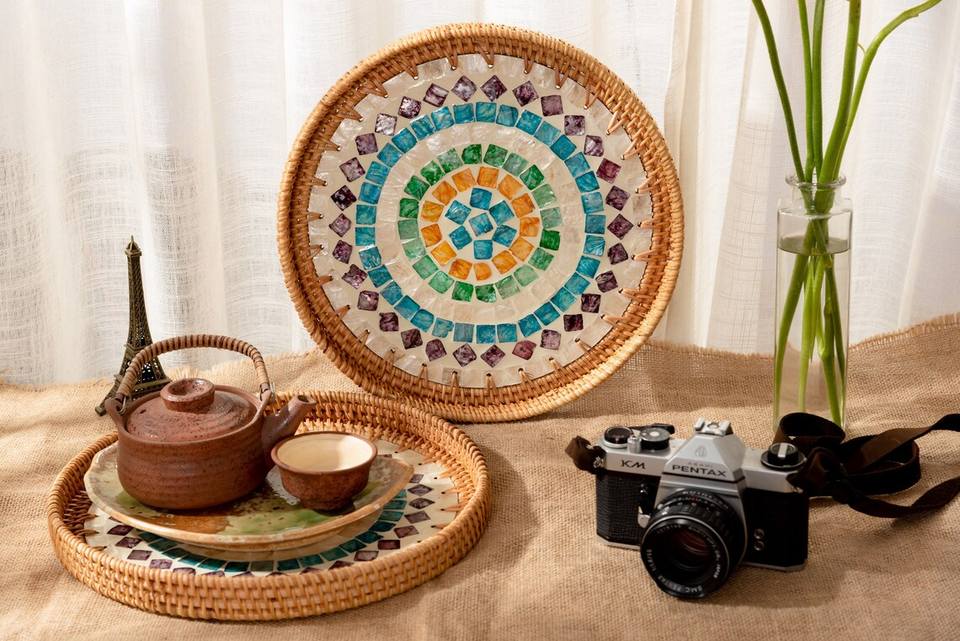 Product Name:Mother of pearl rattan trays