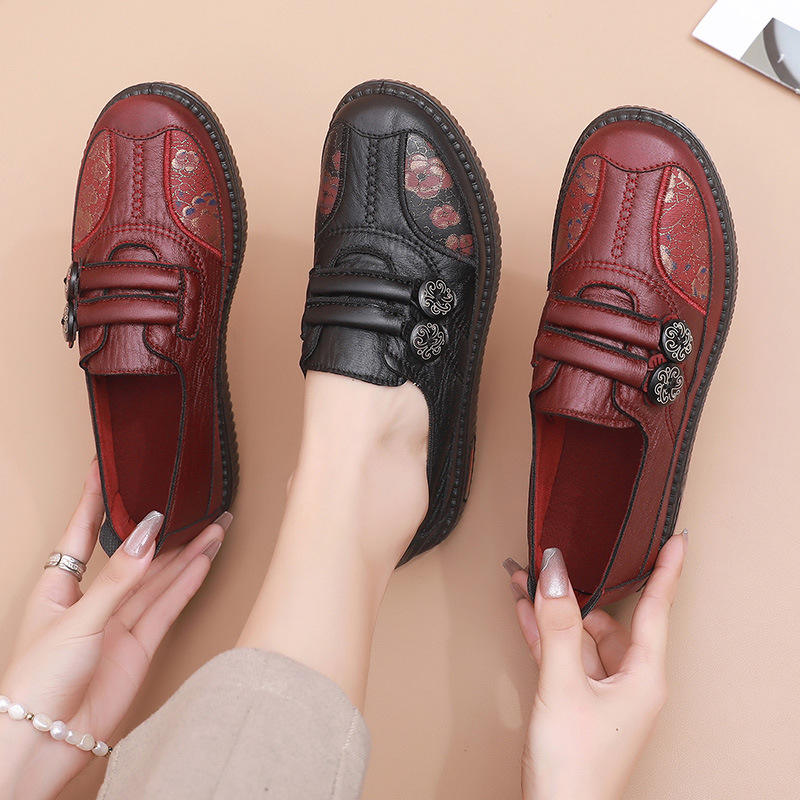 Zapatos de Madre de cuero genuino para mujer, zapatos de cuero de primavera y otoño, zapatos individuales para mujer, cómodos zapatos planos antideslizantes que combinan con todo para ancianos