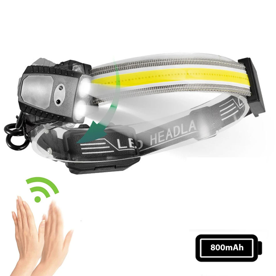 Linterna frontal LED con Sensor de movimiento XPE + COB, linterna de pesca superbrillante, reflector recargable por USB, linterna frontal