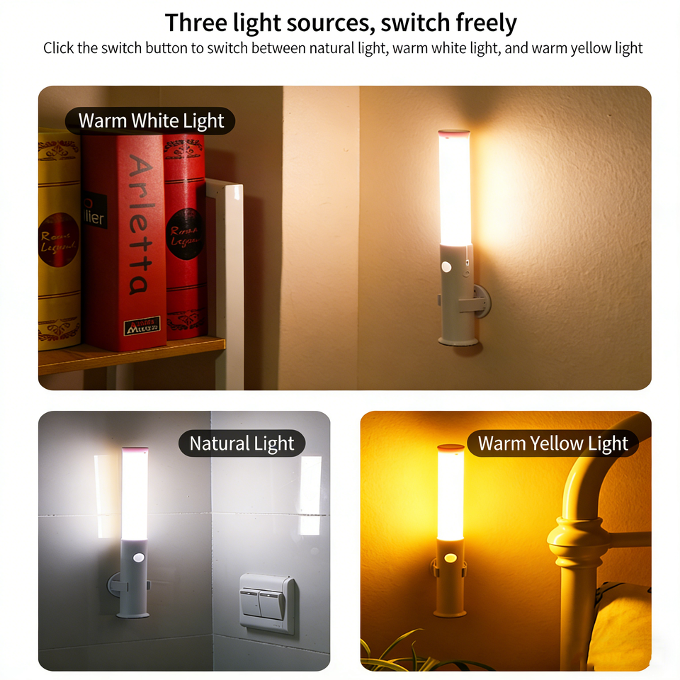 Luz con Sensor de Movimiento, Recargable, Magnética, Luz LED con 3 Temperaturas de Color, Encendido/Apagado Automático, Luz Nocturna para Sala de Estar, IP20