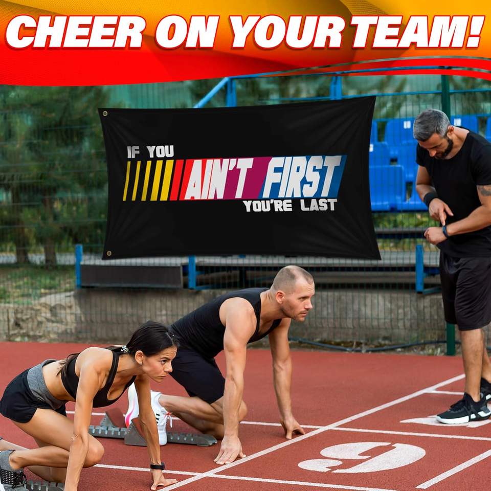 Banderas Motivacionales de Carreras 3x5 FT - Poliéster Duradero, Impermeable y Ecológico - Diseño Audaz - Decoración de Pared para Gimnasio, Cuarto de Hombre, Oficina, Cumpleaños