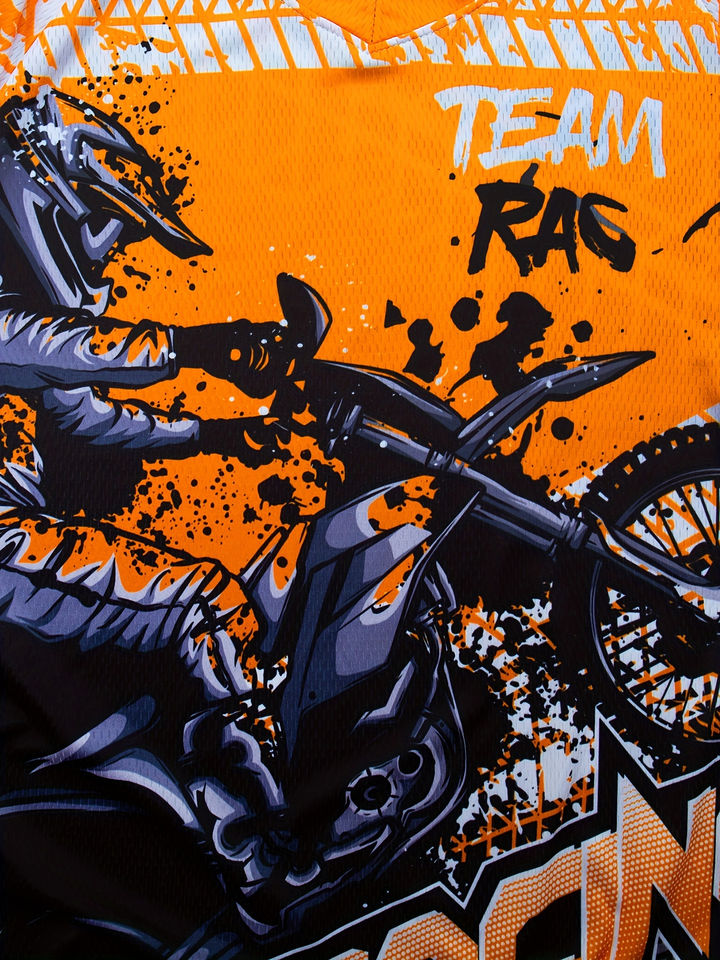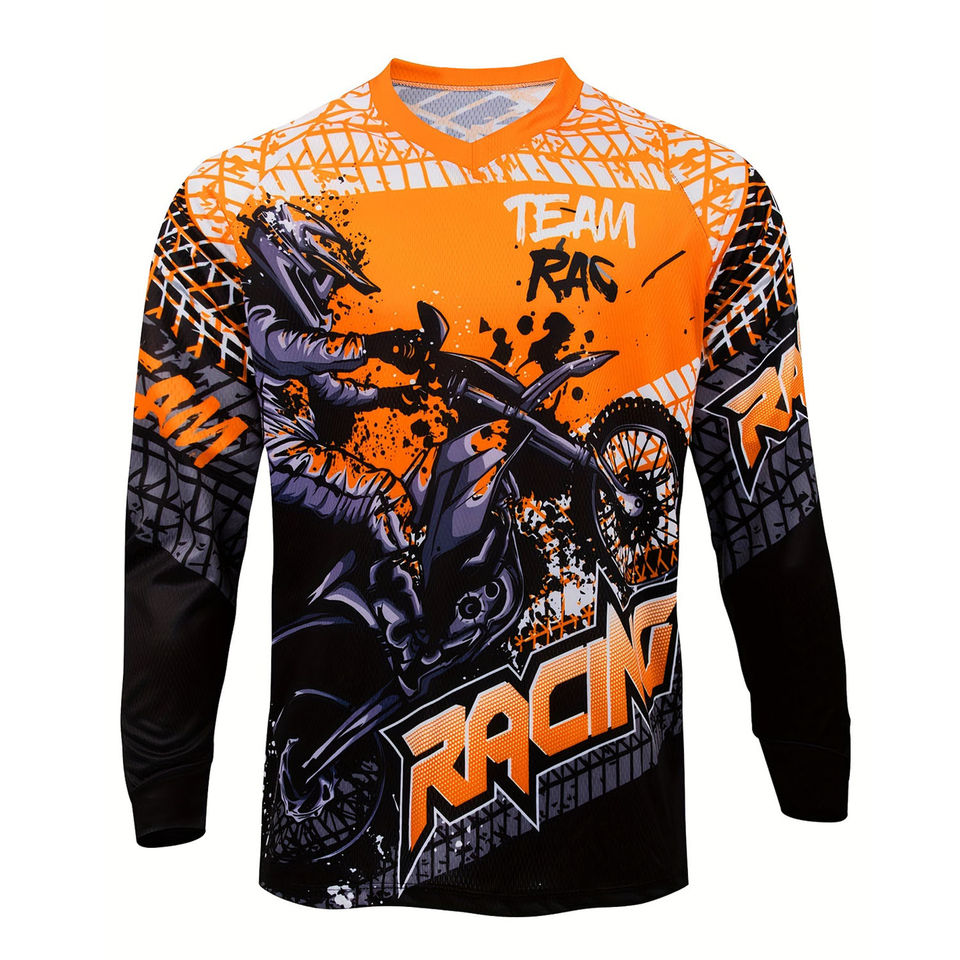 Camiseta de Motocross de Poliéster 100% Transpirable que Absorbe la Humedad, Manga Larga, Cuello en V con Mangas Raglán