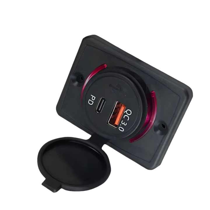 Cargador de Coche Dual USB Tipo-C + Tipo-A 20W PD QC3.0 para Vehículos Motorizados, Barcos, Autobuses y Camiones