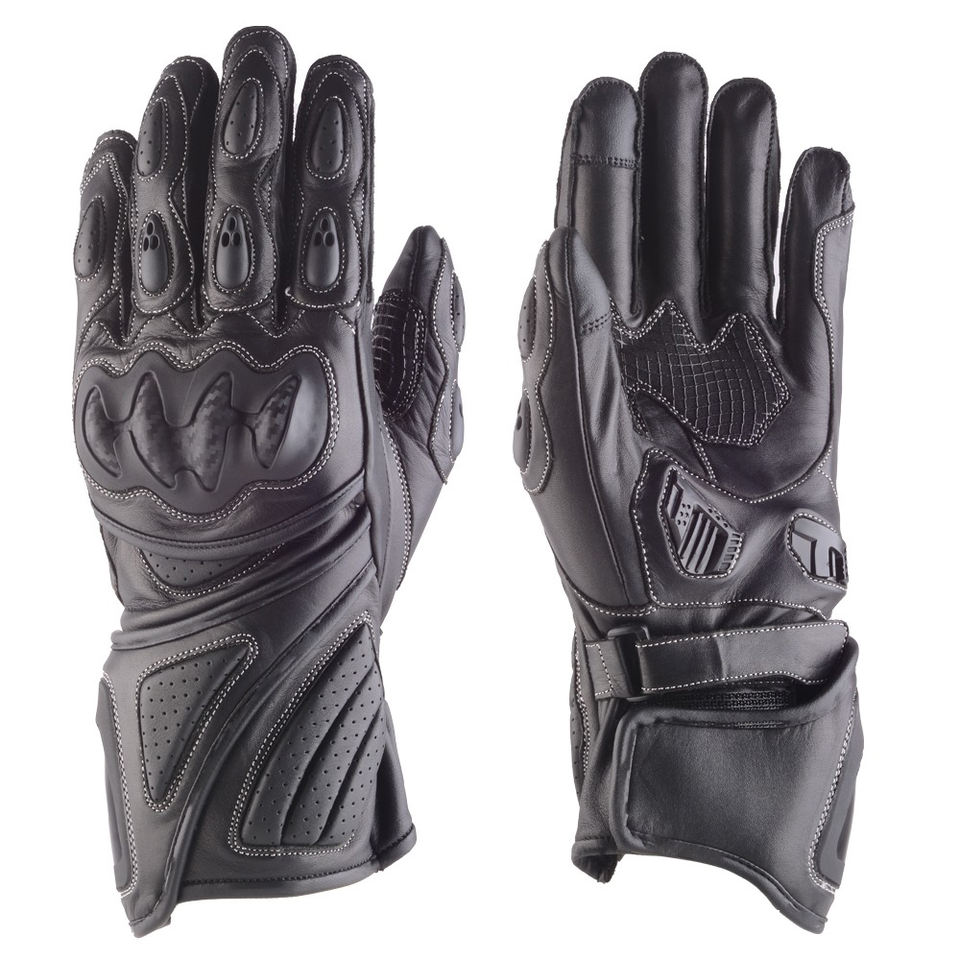 Guantes de moto Cuero negro Costura blanca Motocicleta Auto Racing Estilo largo Pantalla táctil Cafe Racer Guantes de motorista de seguridad
