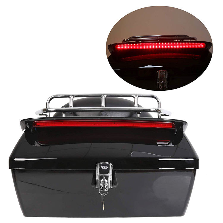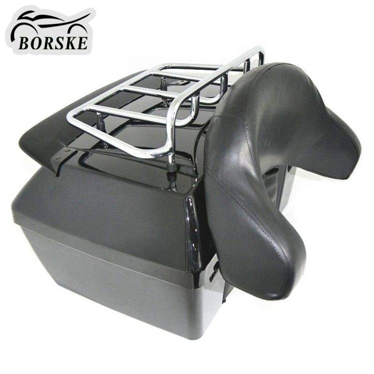 Accesorios para Motocicleta, Baúl Superior para Motocicleta, Caja de Equipaje Trasera con Respaldo y Estante para Harley