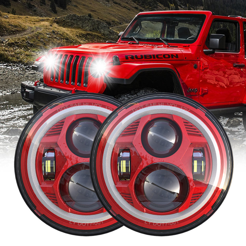 Sistema de iluminación para motocicleta, faro delantero LED multicolor para Harley de 7 ", haz de faro adaptable, 7 faros delanteros para jeep