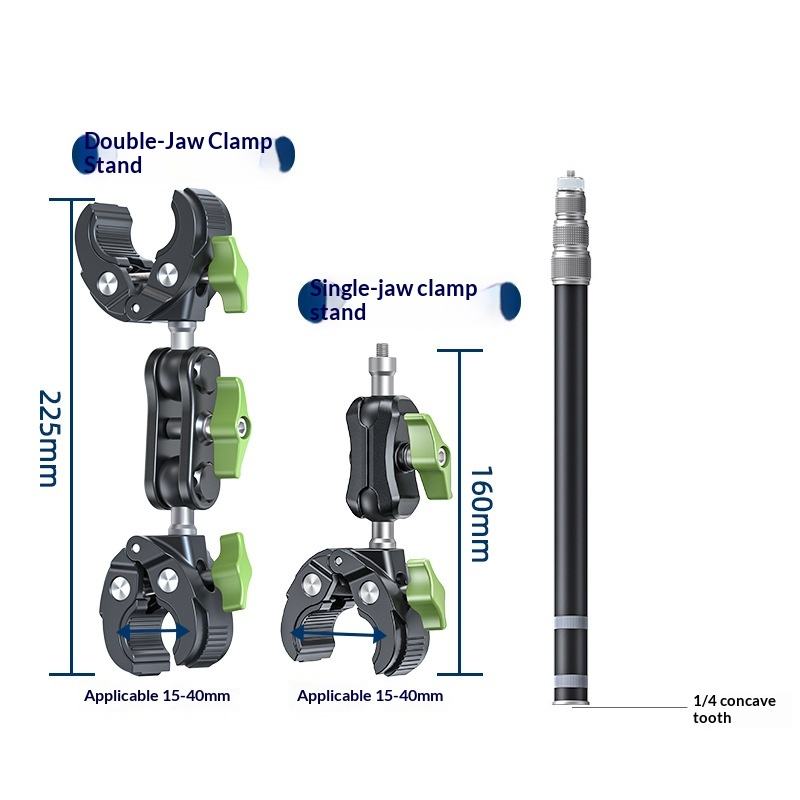 Kit de Soporte para Cámara de Acción para Motocicleta/Bicicleta, Poste Telescópico con 3 Abrazaderas Tipo Cangrejo para Insta360 GoPro DJI, para Vlogs de Ciclismo