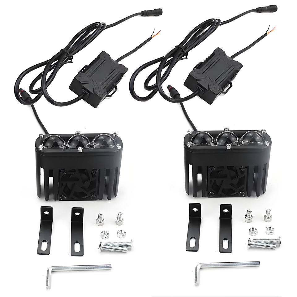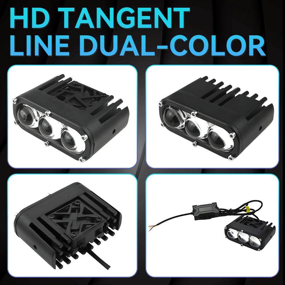 Luz Auxiliar Delantera para Motocicleta, 2 Lentes LED, Luz Blanca y Amarilla, Doble Color, Luz Alta/Baja con Ventilador para Automóvil