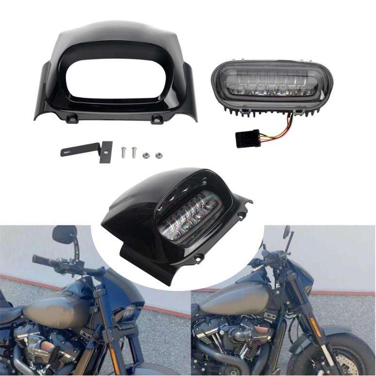 Faro delantero para motocicleta, con luces LED blancas integradas y capó delantero para Harley M8 Softail Fat Bob FXFB 2018-Up 2019 2020 2021