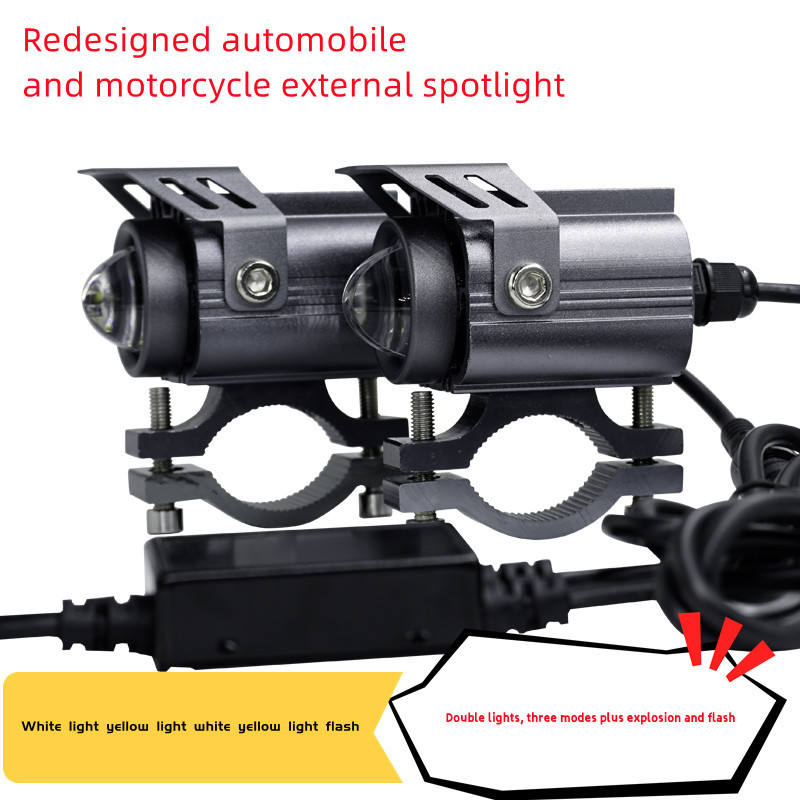 ElegirColor de la luz: Motorcycle LED spotlight tricolor external headlamp with lens