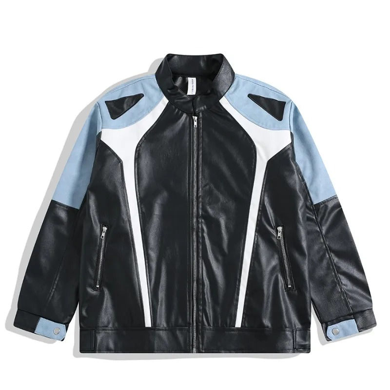 Chaqueta de cuero de motocicleta American Patchwork High Street solapa cremallera abrigos Hip Hop abrigo ropa masculina de moda Tops