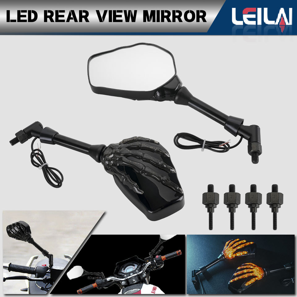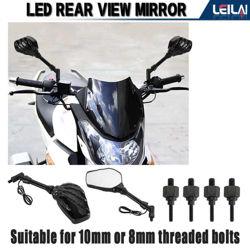 Espejo retrovisor Led para motocicleta, adecuado para pernos roscados de 8mm o 10mm, garra fantasma, precio al por mayor