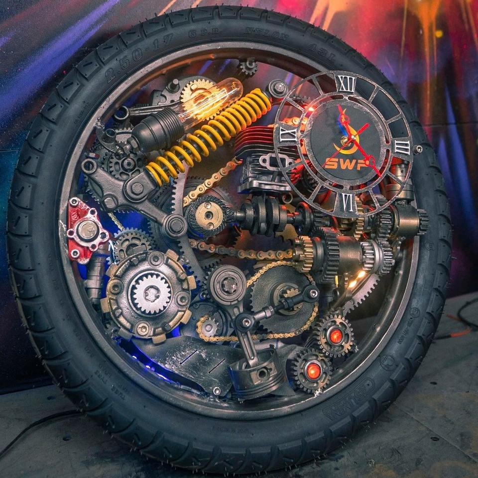Reloj de piezas de motocicleta, reloj de metal hecho a mano, reloj mecánico retro, reloj decorativo para vestíbulo de hotel, reloj decorativo para bar, Vietnam
