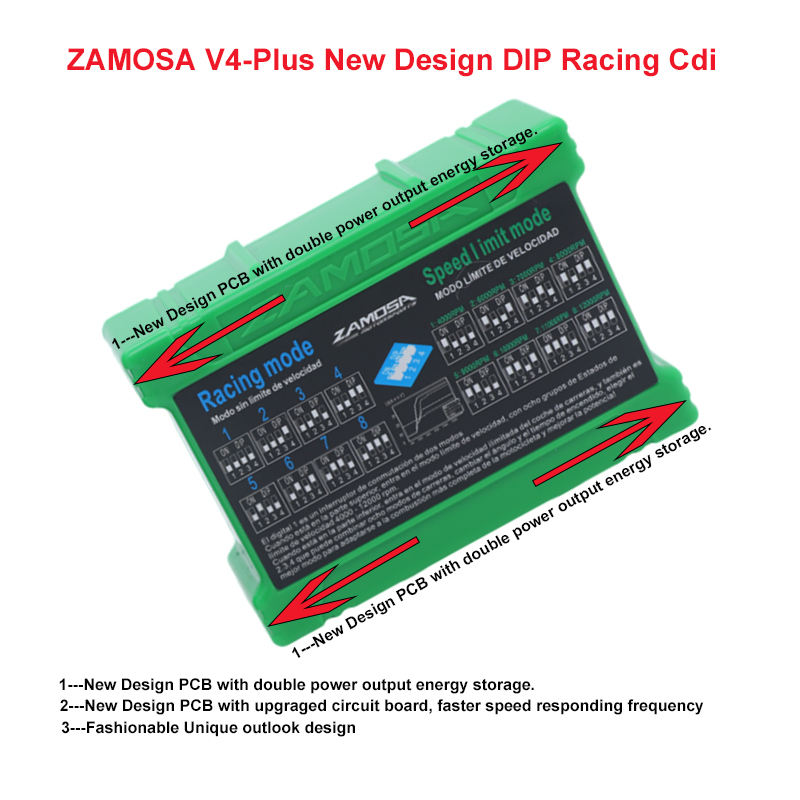 ZAMOSA Interruptor DIP de Carreras de Motos, Versión Mejorada, Desarrollado Exclusivamente, Cdi, 4 Pines, C100 WAVE, 110 CC