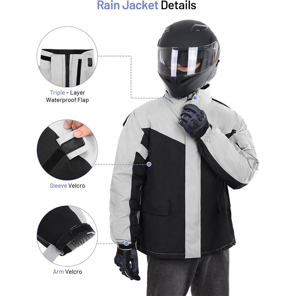 Traje de Lluvia para Motocicleta con Chaqueta y Pantalones Impermeables, Protección Duradera contra Tormentas, Ajuste Ajustable, Capa Transpirable y Logotipo Personalizado
