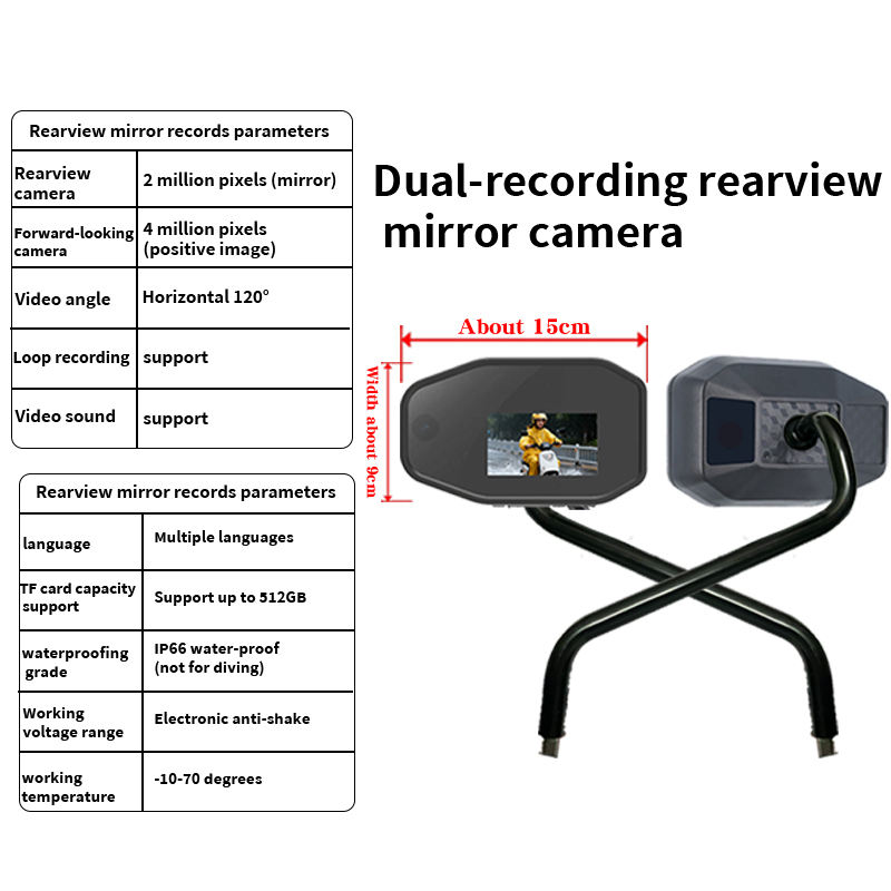 Espejo Retrovisor para Motocicleta con Cámaras Delanteras y Traseras Dobles para Conducir, Grabación de Alta Definición 2K
