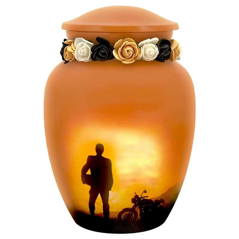 Silueta de motociclista Opción DE CORONA DE tributo de urna mediana Opción de placa de nombre de medallón