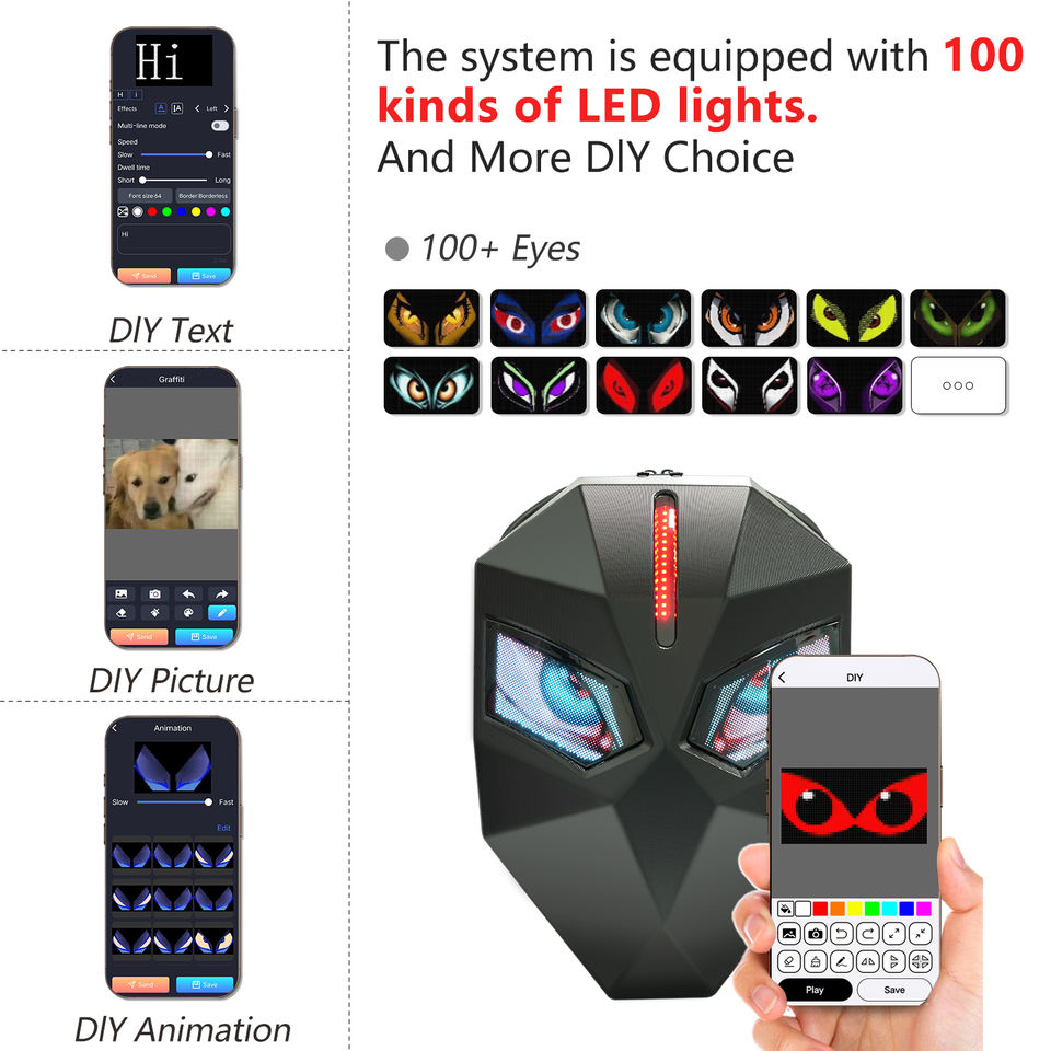 Mochila LED para Motociclistas, Pantalla Dinámica Programable por Aplicación, Casco con Pantalla LED, Bolsa LED Portátil, Bolsa Impermeable para Exteriores