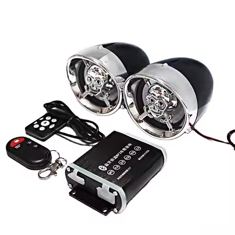 Altavoz Subwoofer Impermeable con Diseño de Calavera para Motocicleta con Alarma, Radio FM, Luces LED RGB, Soporte para Tarjeta TF 5.0 y Control Remoto