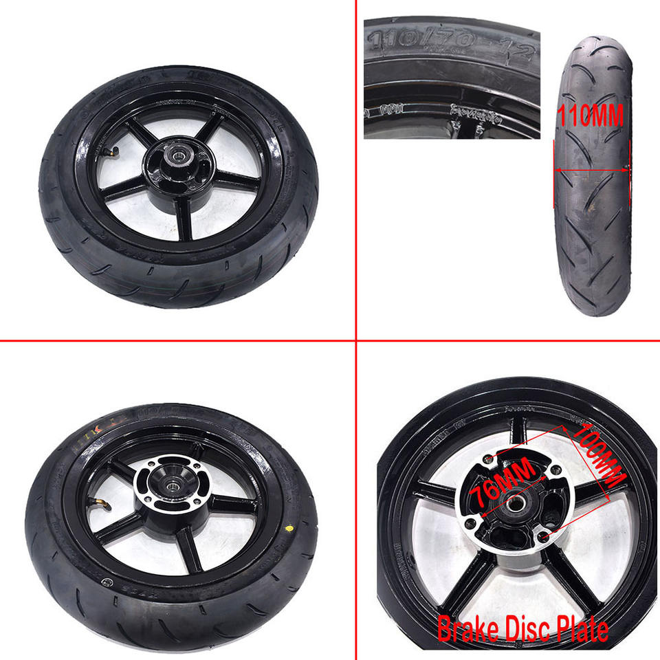 Ruedas Super para Motocicleta, Rin Delantero de 12 Pulgadas 2.50-12 con Neumático de Carretera 110/70-12, Neumático Trasero 3.00-12 120/70-12 para Motocicleta Tuttio Dirt Pit Bike