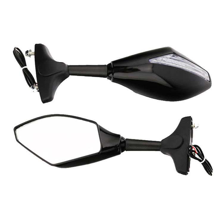 Espejo Retrovisor Universal para Motocicleta, Negro Brillante, Integrado con Luz de Señal de Giro, Compatible con Honda, Suzuki, Yamaha