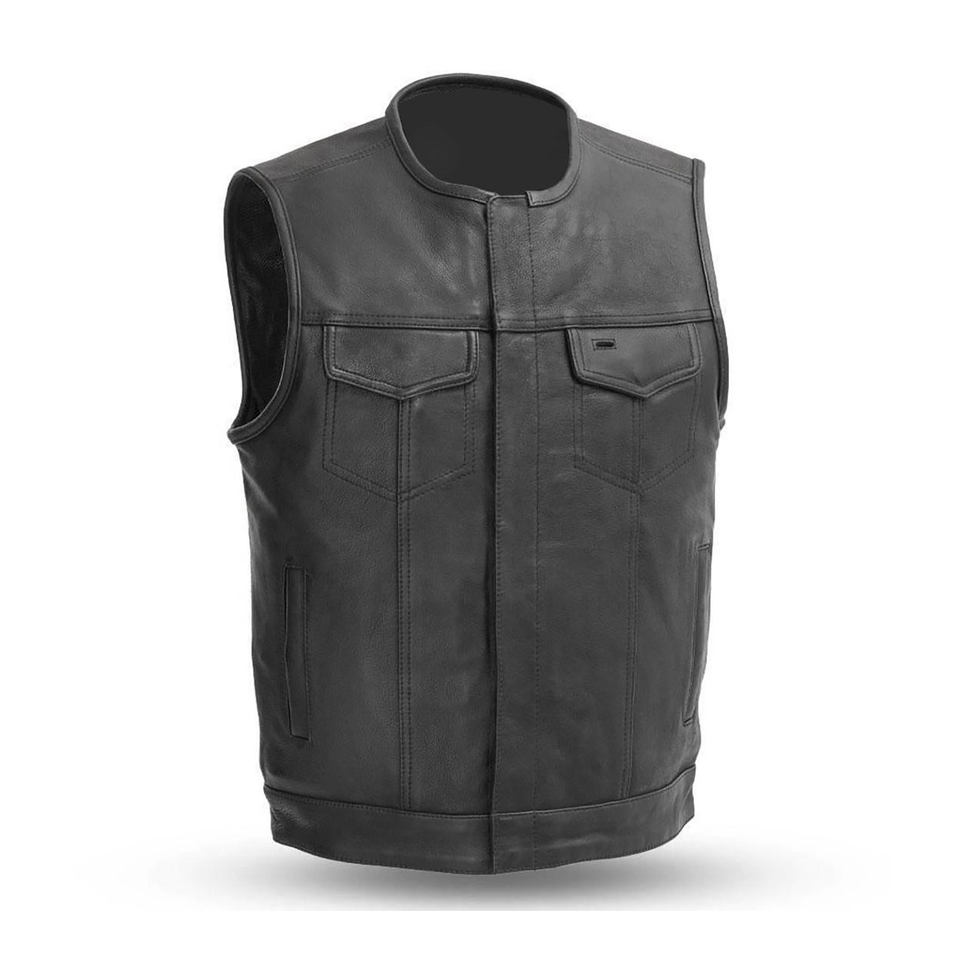 Chaleco de Motocicleta de Cuero Sintético Personalizado para Hombre, Cortavientos, Cuello en V, Botones, Estilo Urbano